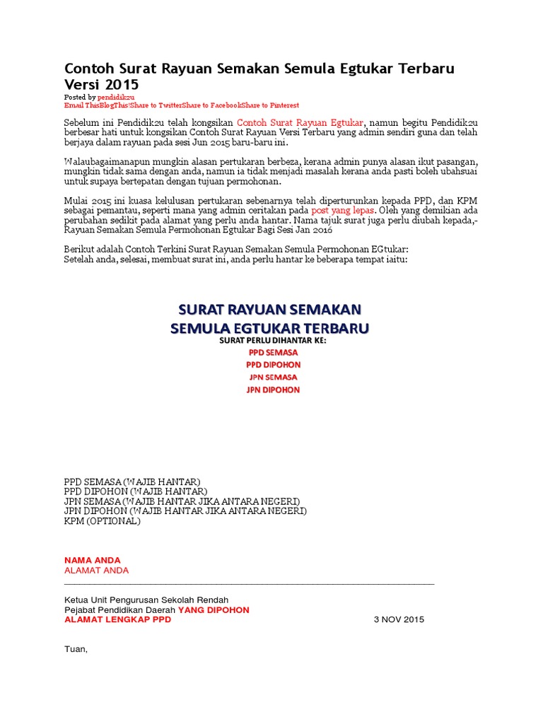 Contoh Surat Rayuan Semakan Semula Egtukar Terbaru Versi 2015 Pdf